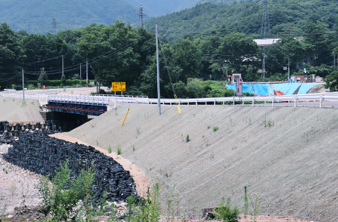 高瀬上橋 1942年の竣工から35年後に、同じ橋の改良整備工事も担当した。JR大糸線の高瀬川橋梁が並走しているが、昭和初期は鉄道の線路が今より川に近く、低い位置に通っていた ▼2020年の様子 |